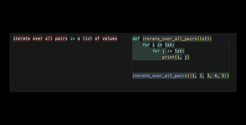 Tính năng tự động hoàn thành của Cursor AI cũng hỗ trợ mã được viết bằng ngôn ngữ tự nhiên. Ví dụ, nếu bạn muốn tạo một vòng lặp for kép để lặp qua tất cả các cặp trong một danh sách, bạn chỉ cần mô tả điều này bằng văn bản đơn giản. Sau đó, Cursor sẽ cung cấp đề xuất tự động hoàn thành tương ứng, và bạn có thể tích hợp mã đó bằng cách nhấn phím Tab.