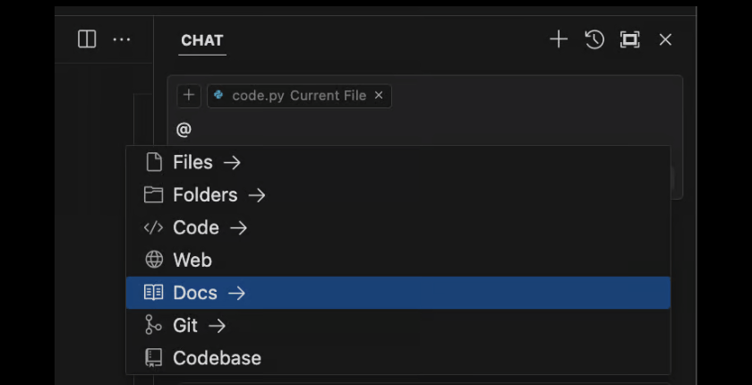 Một tính năng rất hữu ích của Cursor AI là khả năng thêm tài liệu tham khảo, điều này đặc biệt hữu ích đối với các thư viện tư nhân hoặc ít được biết đến, nơi tài liệu có thể không được sử dụng trong quá trình đào tạo AI.