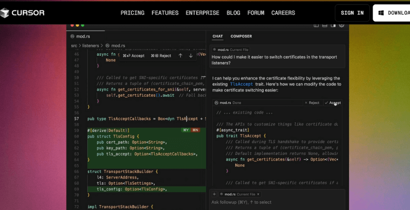 Điểm mạnh của Cursor AI nằm ở việc tích hợp các mô hình AI tiên tiến như ChatGPT và Claude từ OpenAI, mang đến khả năng đề xuất mã thông minh theo ngữ cảnh, tự động phát hiện lỗi trong quá trình viết mã và tối ưu hóa đoạn mã một cách linh hoạt. Nhờ những tính năng này, Cursor AI không chỉ hỗ trợ rút ngắn thời gian phát triển phần mềm mà còn giúp nâng cao chất lượng mã nguồn một cách rõ rệt.