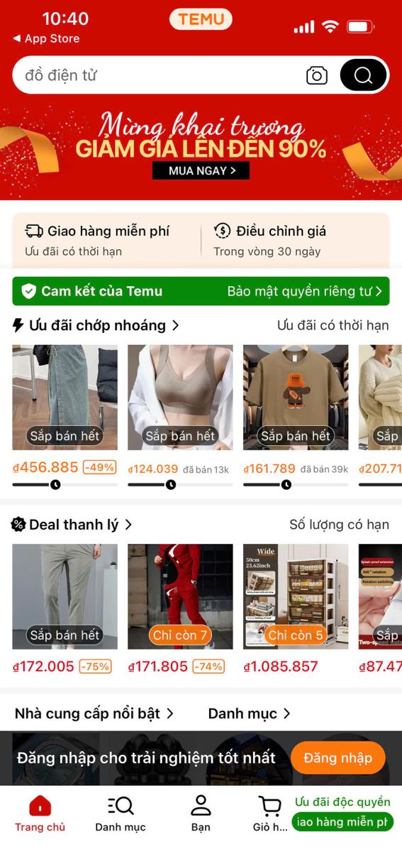 Sau khi đăng ký xong, bạn có thể đăng nhập và mua sắm trên ứng dụng Temu một cách thuận tiện.